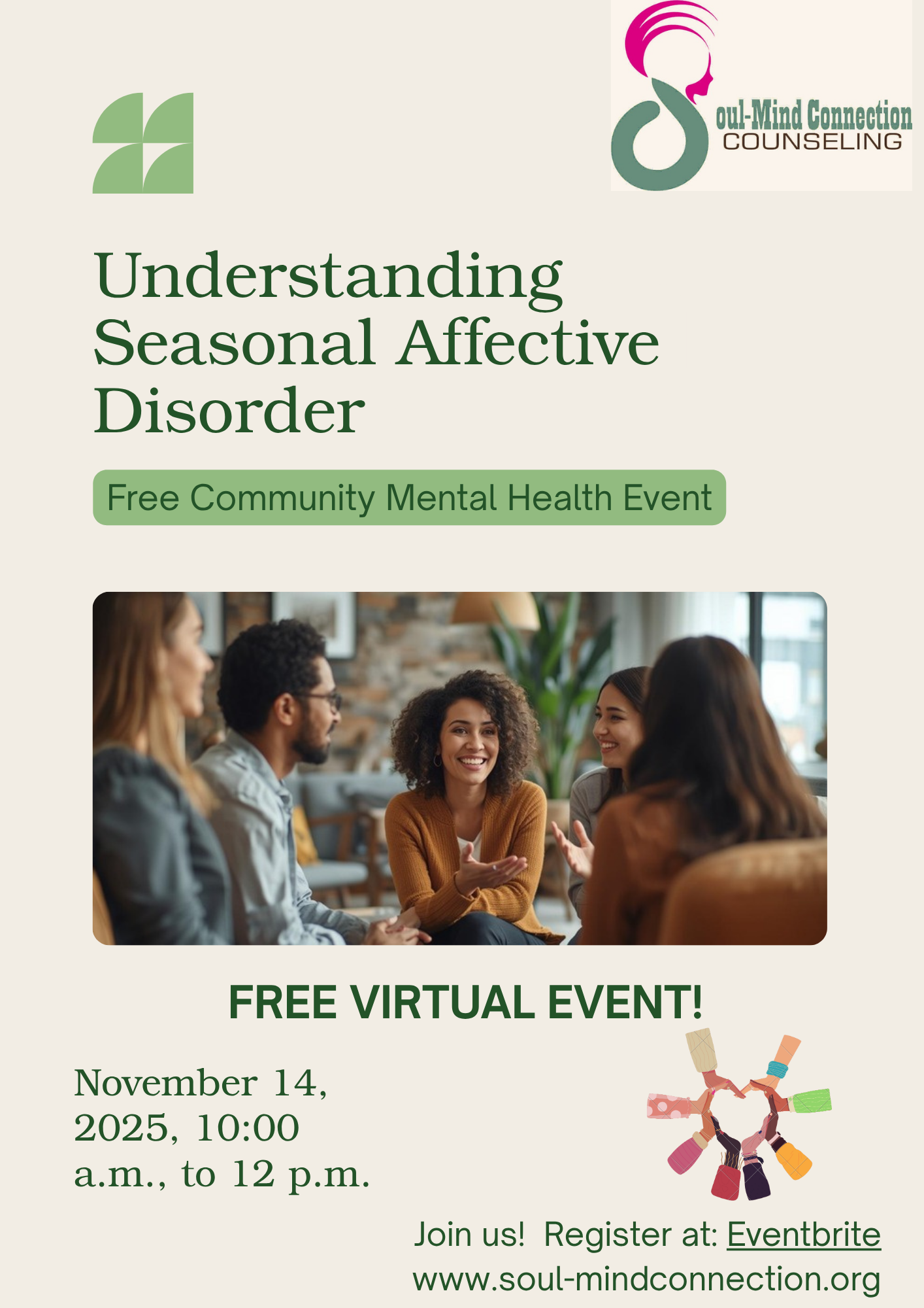 Join Soul-Mind Connection Counseling for a supportive and interactive virtual workshop designed to help you better understand and manage the emotional impact of the winter season.